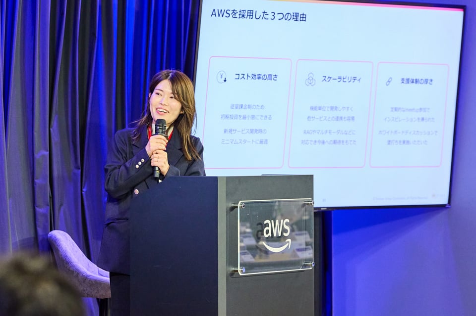 2025年11月17日に開催された アマゾン ウェブ サービス ジャパン(以下、AWS ジャパン)主催の「第5回 AWS ジャパン 生成 AI Frontier Meetup 〜学びと繋がりの場〜」に当社の峰村 仁子が登壇しました。
